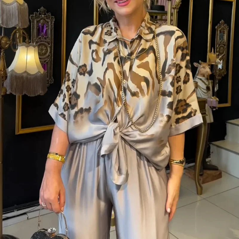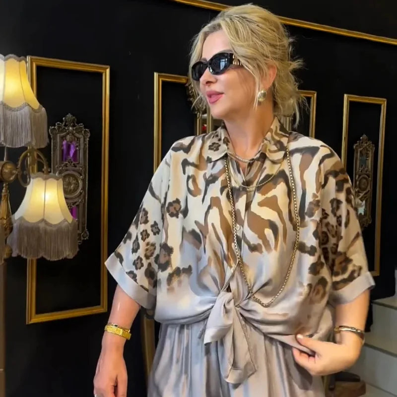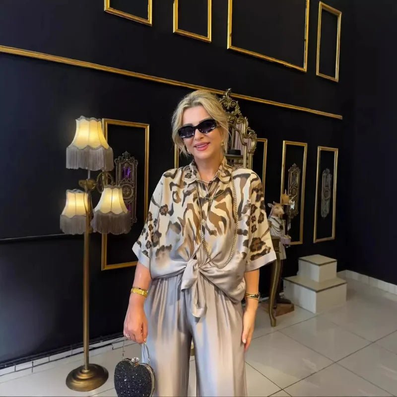 Conjunto Fabiana traz um visual moderno e sofisticado, com tecido leve e caimento fluido que proporciona conforto o dia todo. A camisa tem modelagem soltinha e pode ser usada amarrada ou solta, enquanto a calça ampla alonga a silhueta e garante movimento natural.