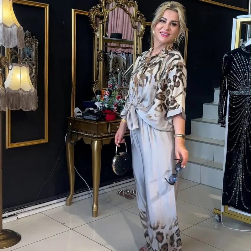 É uma opção versátil para eventos, jantares ou produções mais elegantes, sem perder praticidade. A combinação da estampa com o acabamento acetinado deixa o look marcante, atual e com presença.
